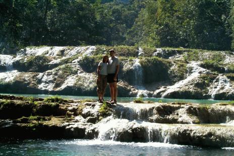 ![]() The honeymooners at Semuc Champay Sat Jan 29, 2000 Semuc Champay, Guatemala (15° 32' 1" N, 089° 57' 35" N, Elev 0000247m) File size: 41k (790k) |