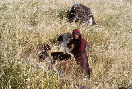 ![]() Women harvest wheat near Namrung Fri Nov 10, 2000 Namrung to Lho, Nepal File size: 46k (892k) |