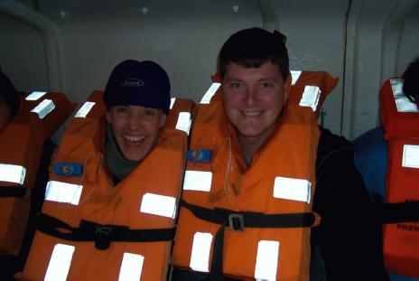 ![]() Us in the life boat during the drill Fri Jan 1, 1999 Beagle Channel, Tierra del Fuego File size: 18k (343k) |